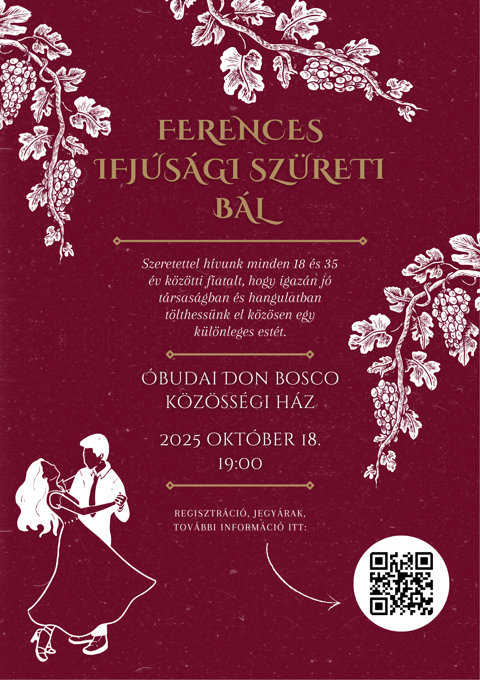 Sok szeretettel hívjuk az ifjúsági korosztályt – az Országúti Ferences Ifjúság által idén először megrendezésre kerülő – Szüreti Bálra!